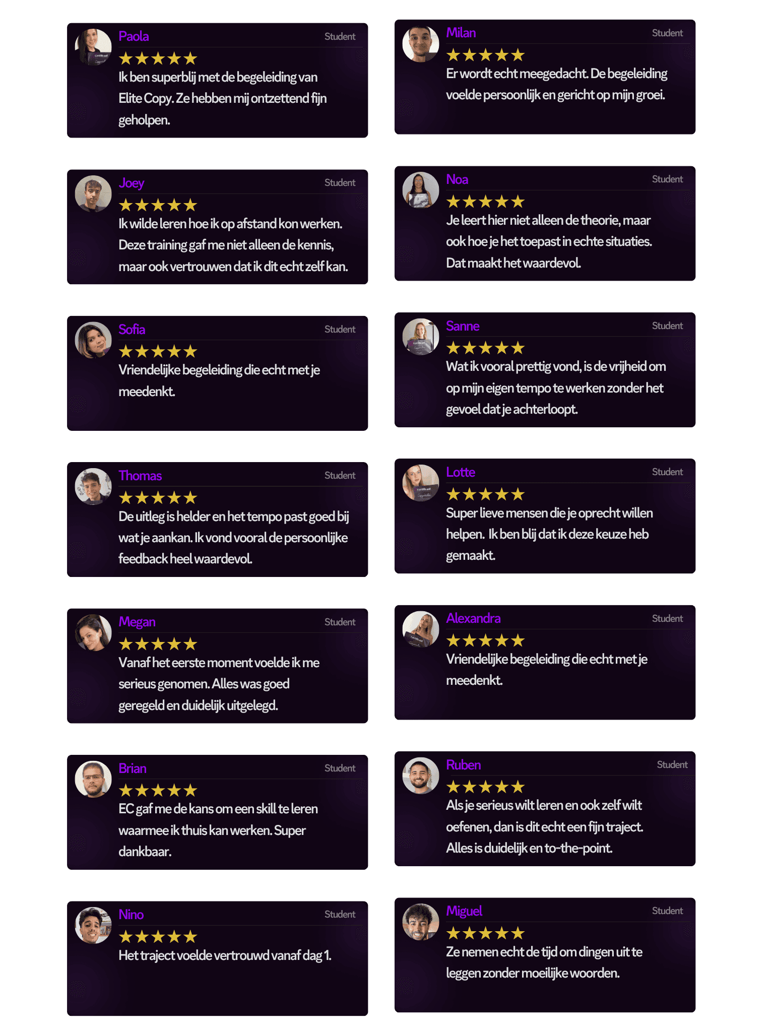 Binnen CopyMastery leer je het geheim van maandelijkse contracten waar klanten verslaafd aan raken. Jij krijgt klanten die €3.000 per maand betalen - maand na maand.
